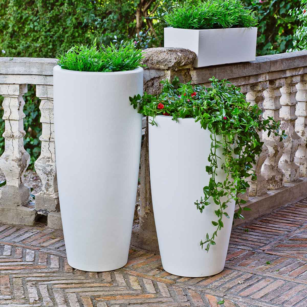 Todos los productos Newgarden están fabricados en polietileno, por lo que son ligeros y muy resistentes a temperaturas extremas. También están protegidos contra los rayos UV, haciendo que la vida útil del producto sea extraordinariamente larga.