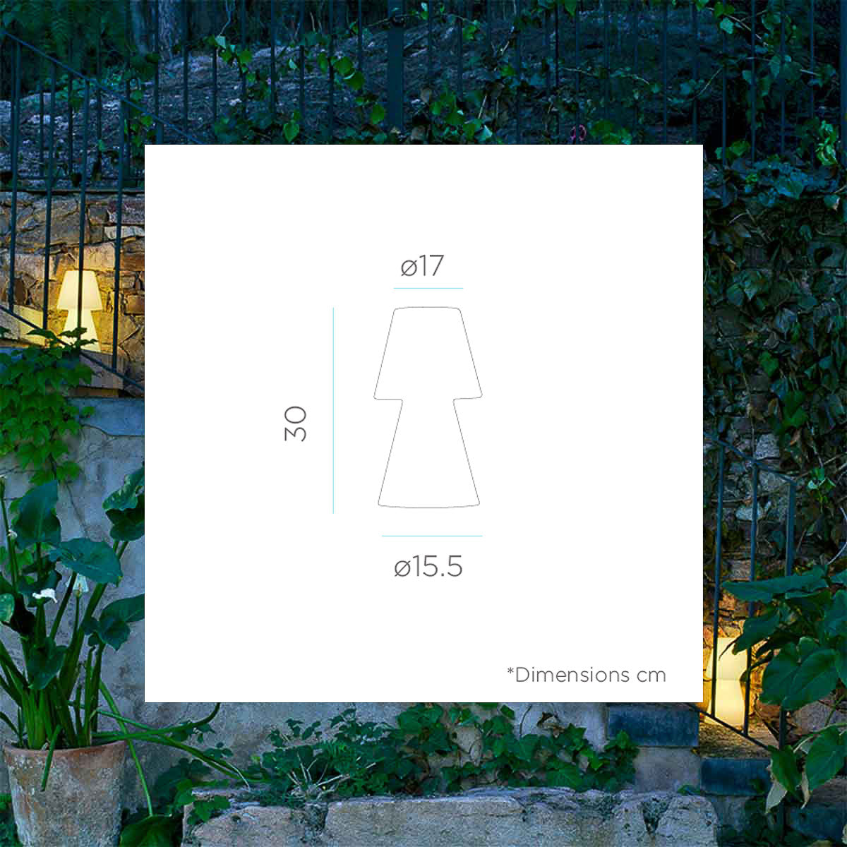 El modelo LOLA 30 (ø17x30 cm) está considerado el icono de la familia de productos Newgarden, con su forma tan particular ha enamorado a media Europa siendo nuestro producto más vendido del mercado.