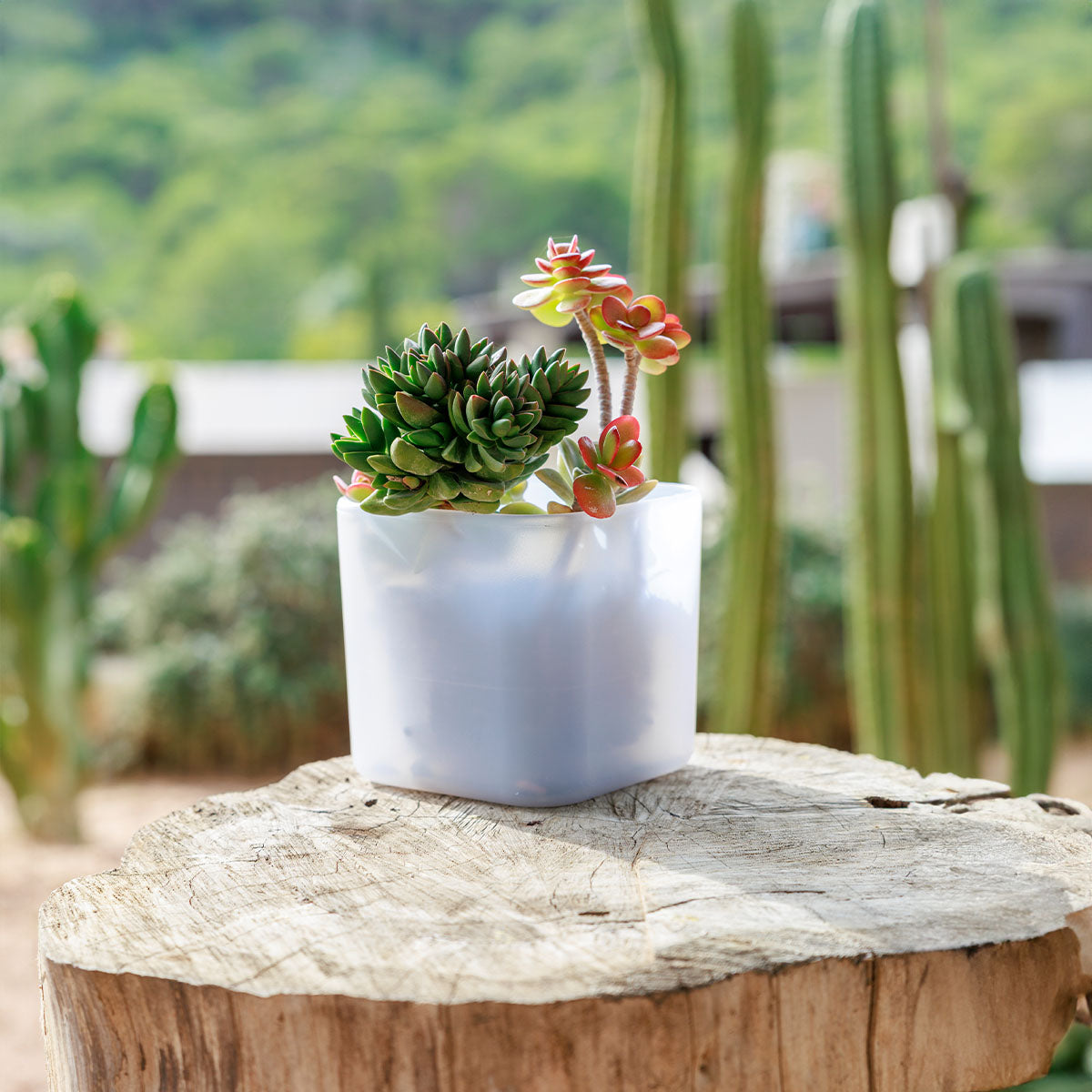 Maceta Eneldo, pequeña en tamaño, pero grande en carácter. Eneldo es ideal para quienes valoran los detalles. Su forma geométrica y compacta la hace perfecta para agruparse en repisas o para destacar sola con estilo.