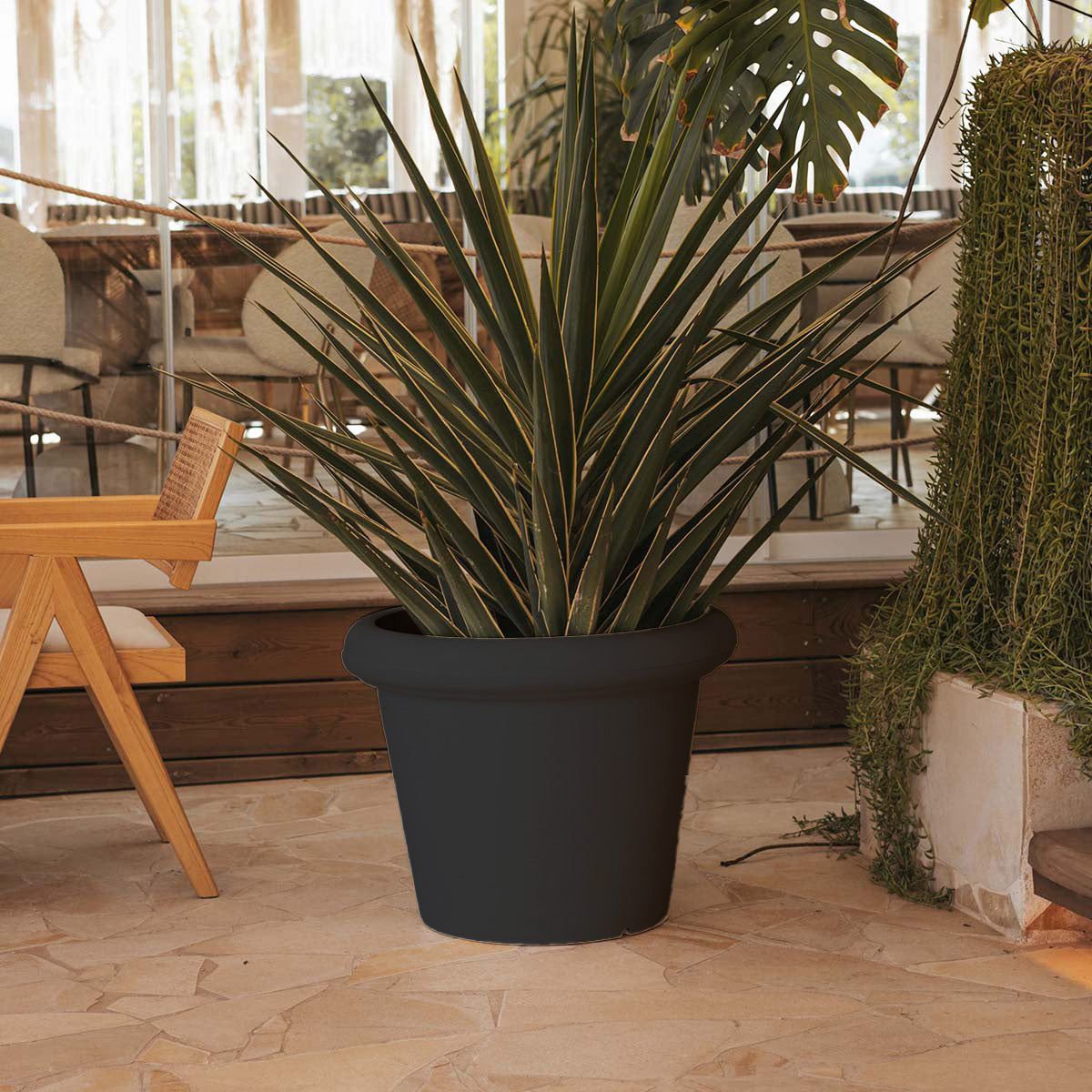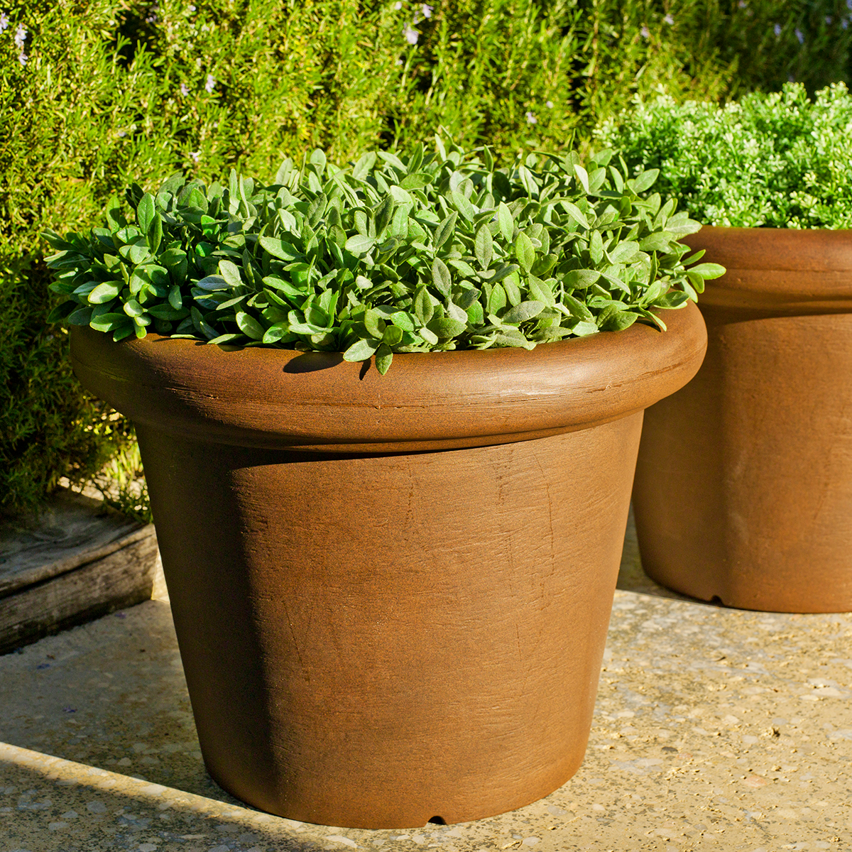*ROSA: Es una maceta con una gran base de plantación. Líneas redondeadas y texturizado en acabado rústico inspirado en diseños clásicos de la maceta. Disponible en tamaños y colores.