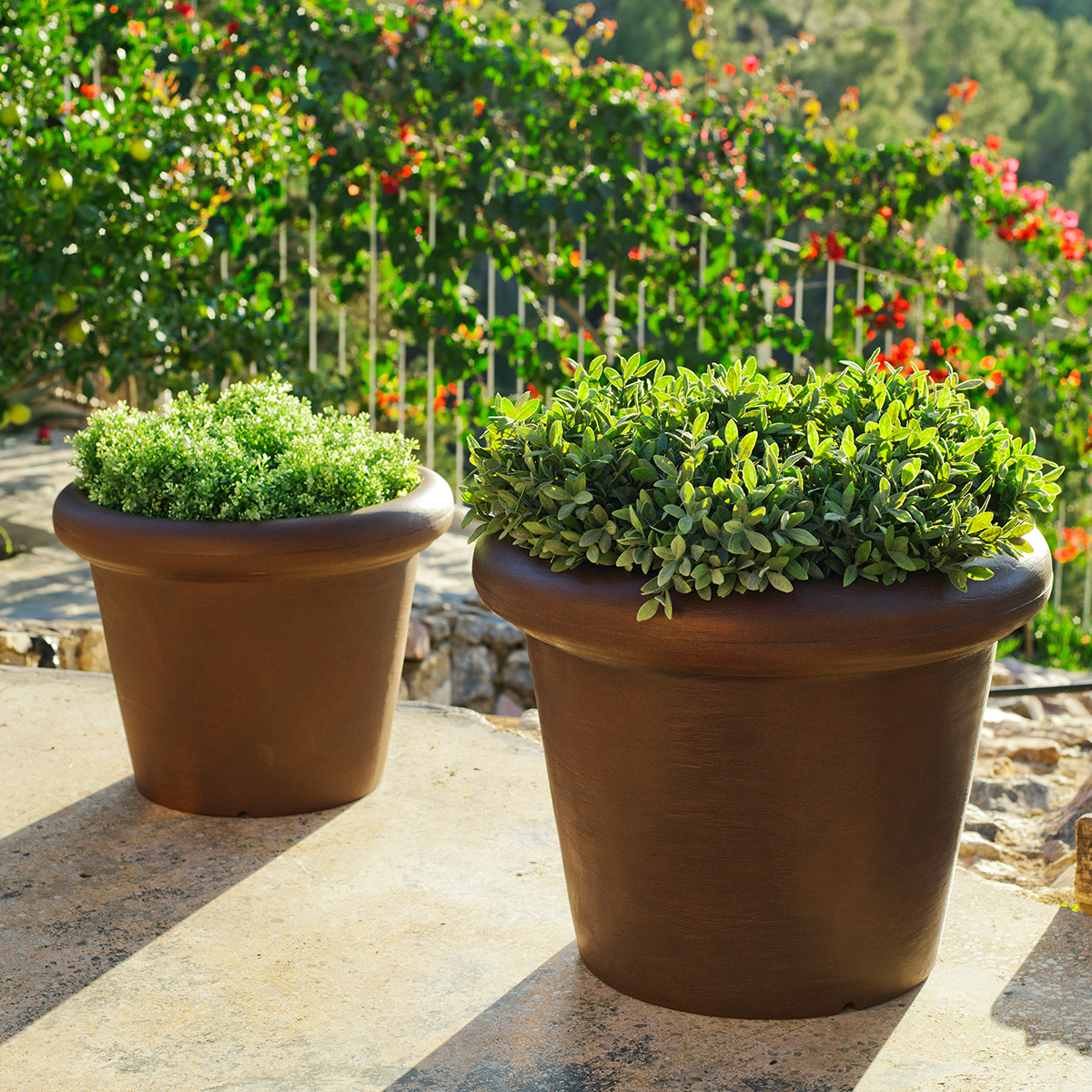 Todos los productos Newgarden están fabricados en polietileno, por lo que son ligeros y muy resistentes a temperaturas extremas. También están protegidos contra los rayos UV, haciendo que la vida útil del producto sea extraordinariamente larga.