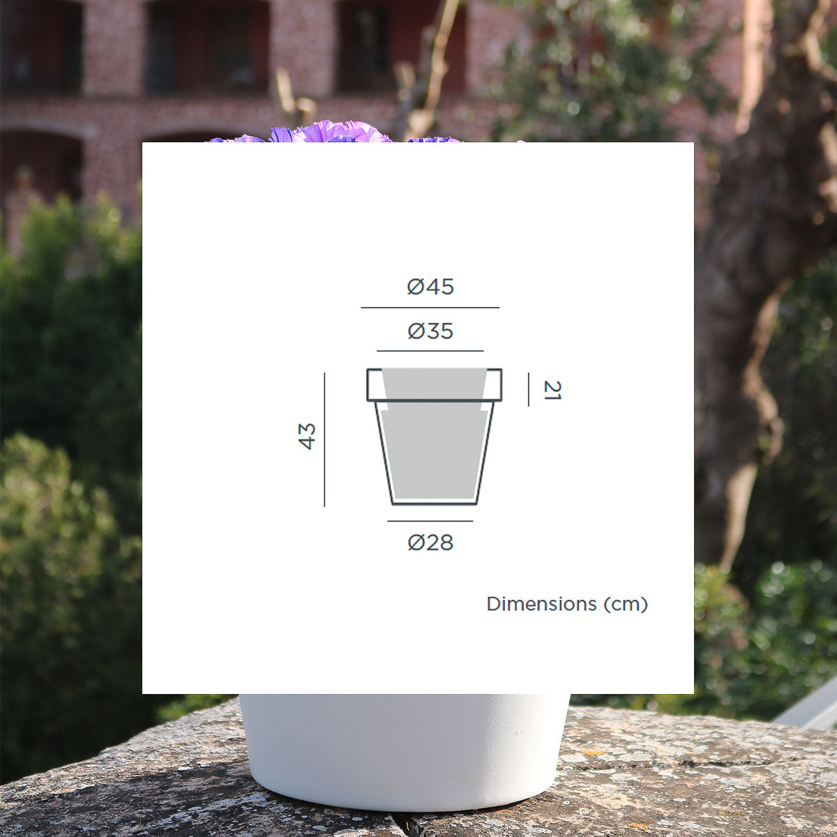 Magnolia 45 (ø45x43 cm) es considerado uno de las macetas estrella de la colección de jardín de Newgarden. Su gran variedad de acabados, tamaños y colores hacen de él un indispensable dentro de la gama de macetas redondas.