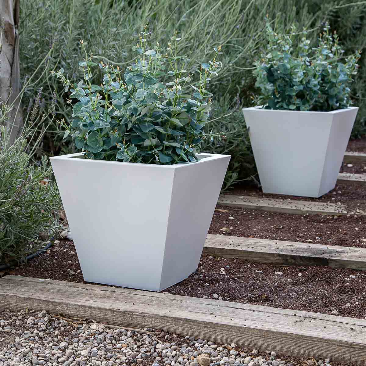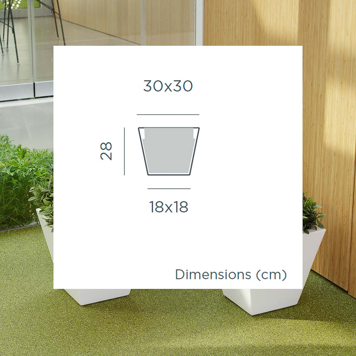Maceta trapezoidal. Líneas básicas y texturizado en acabado liso. Ideal para plantas pequeñas. Disponible en varios colores.