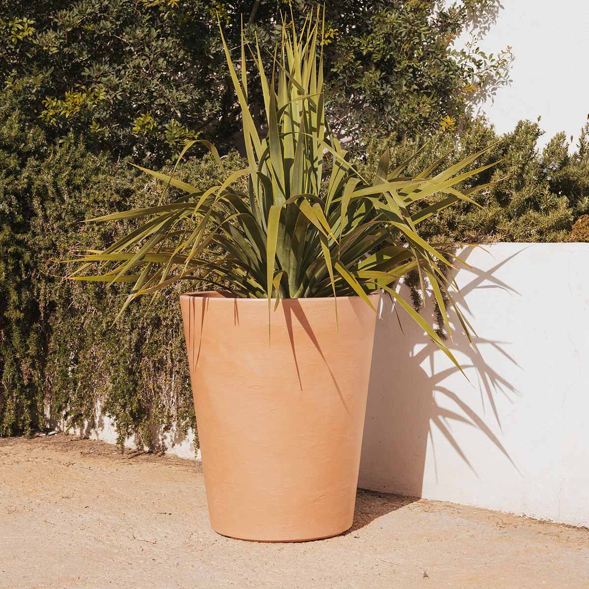 Es una maceta con una base amplia de plantación. Disponible en varios colores y texturas.