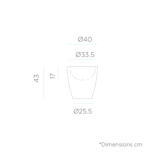 VIOLETA 40 (40x43 cm): Es una maceta coniforme con una gran base de plantación. Líneas redondeadas y texturizado en acabado liso. Disponible en tamaños, colores y acabados.